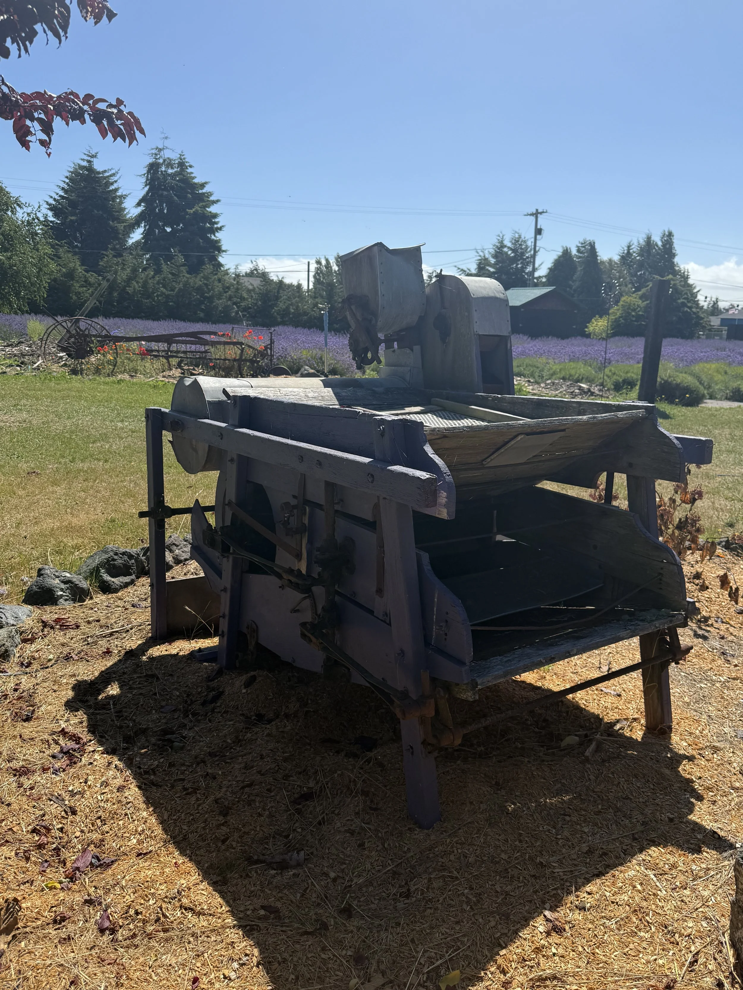 Did You Know: This big purple machine is called a bud shaker. Farmers have been using machines like this for decades to separate dried lavender buds from their stems—an essential step in making sachets, soaps, oils, and more. These machines came into wider use in the mid-20th century as lavender farming scaled up, especially in places like Provence, France, and eventually here in Sequim.
